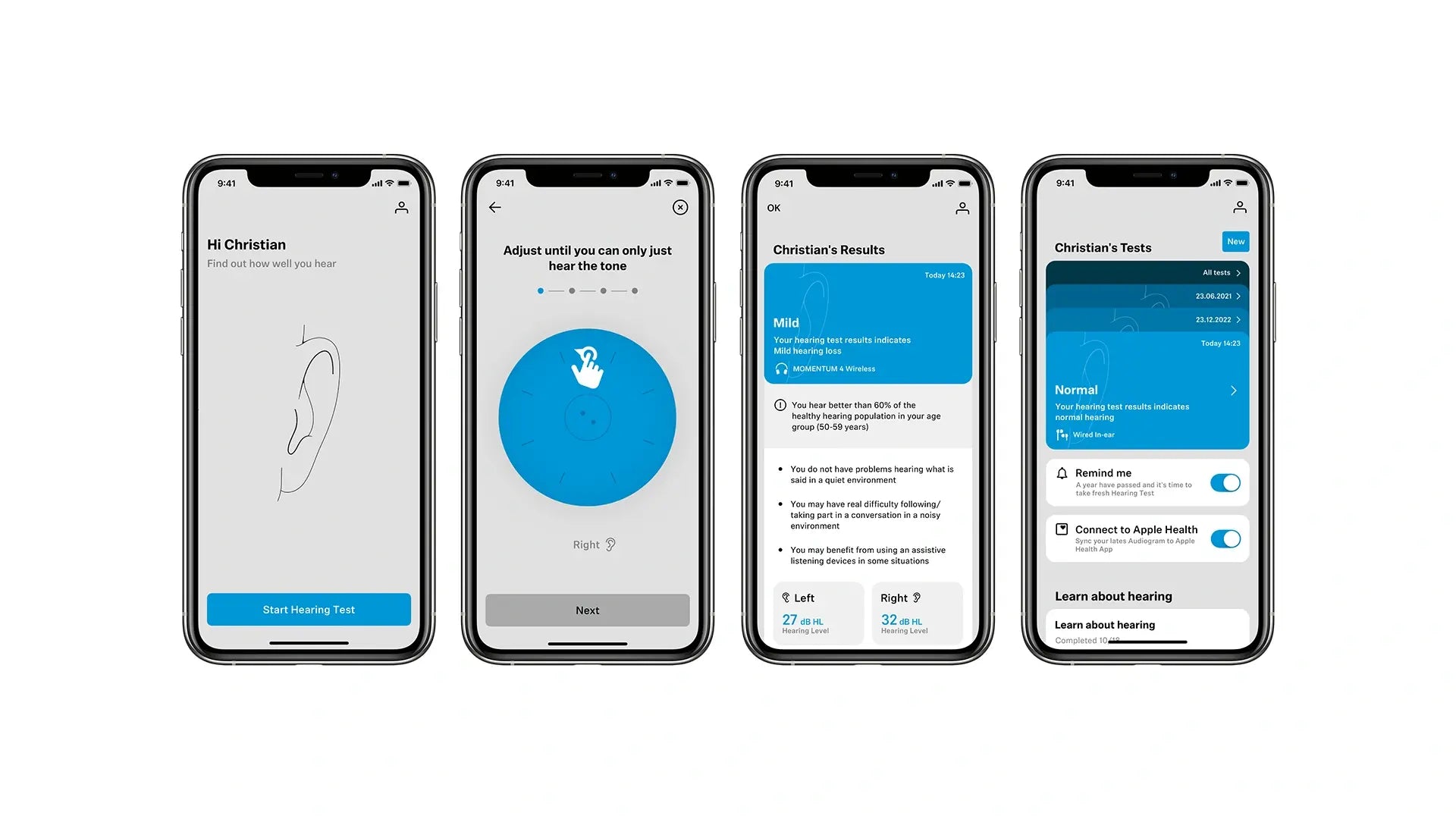 全新森海塞爾聽力檢測應用程式,讓您輕鬆守護聽力健康,操作簡便如從未如此簡單。您只需準備智慧裝置與任意一組耳機即可。